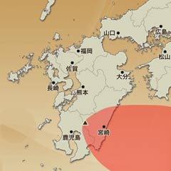 【1】新燃岳から約2km以内では噴火に伴う弾道を描いて飛散する大きな噴石等に警戒が必要です。