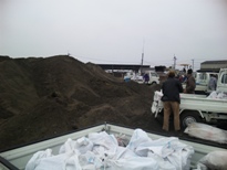 『今朝は7時から、地域住民による、灰の除去作業ボランティアでした。灰の一時収集所には、灰の山ができつつあります』