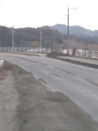 「新燃岳から約10kmの場所では、道路の降灰の除去も追いつかずにかろうじて車道が見える状態です。とりあえず路肩に積み上げてあります」