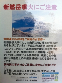 『走行に注意です。霧島サービスエリアに貼ってありました』(2日 宮崎県えびの市のウェザーリポートより)