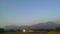 「新燃岳(中央)からの噴煙が微かに見えます。夷守岳(右端)に雲がかかっています。穏やかな一日にしてください_(._.)_」