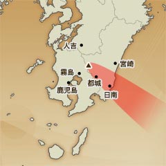 新燃岳が噴火した場合、14(土)は、噴煙は南東方向へ流れます。【宮崎県】