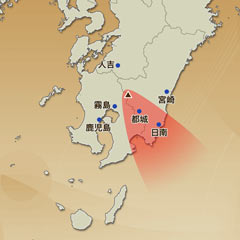高原町、都城市、三股町、日南市、串間市、宮崎市の一部