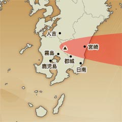 1(水)に新燃岳が噴火した場合、噴煙は東方向へ流れます。【宮崎県】