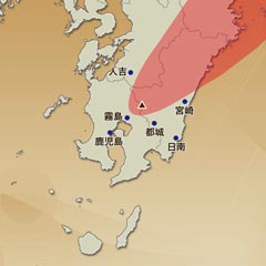 新燃岳が噴火した場合、噴煙は主に北~北東へ流れます。【熊本県】