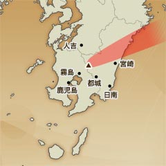 新燃岳が噴火した場合、噴煙は北東方向に流れます。