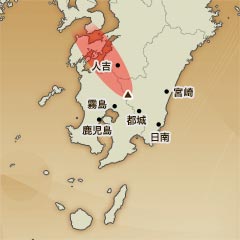 人吉市、八代市の一部、球磨村、芦北町、水俣市、津奈木町、上天草市、天草市、苓北町