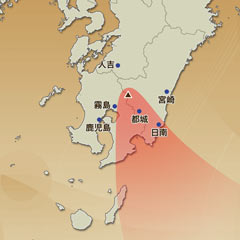 高原町、都城市、小林市、えびの市、三股町、日南市、串間市、宮崎市